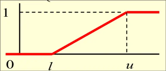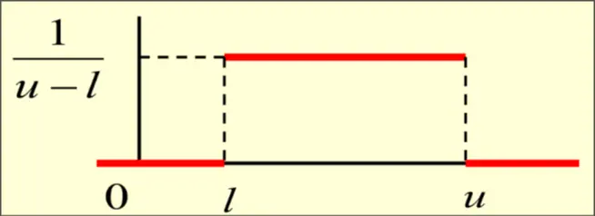 Definition Uniform RV X takes values in interval [l,u],l<u∈R s.t probability of any subinterval is proportional to its length: P(a<X<b)=u−lb−a,∀l≤a≤b≤u PDF Requirement {u−l101≤x≤uotherwise CDF Requirement ⎩⎨⎧0u−lx−l1x<11≤x≤ux>u